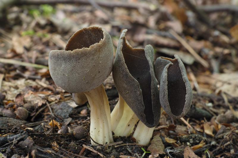 Žebernatým třeněm význačný chřapáč Quéletův (Helvella queletii) dává přednost alkaličtějším půdám. Roste pod duby, lipami a některými dalšími listnáči. Pod vrbami, obvykle na chudší alkalické půdě (vápencový štěrk, ale i erodující panely), můžete najít drobné černé pohárky - stopečku černou (Helvella corium). Posledním z askomycetů, který rovněž v letošní sezóně příliš nerostl, je ucháč obecný (Gyromitra esculenta), saprotrof na borovém opadu. Staré atlasy jej uváděly jako jedlý, od publikace otrav v několika evropských zemích je považován za jedovatý.