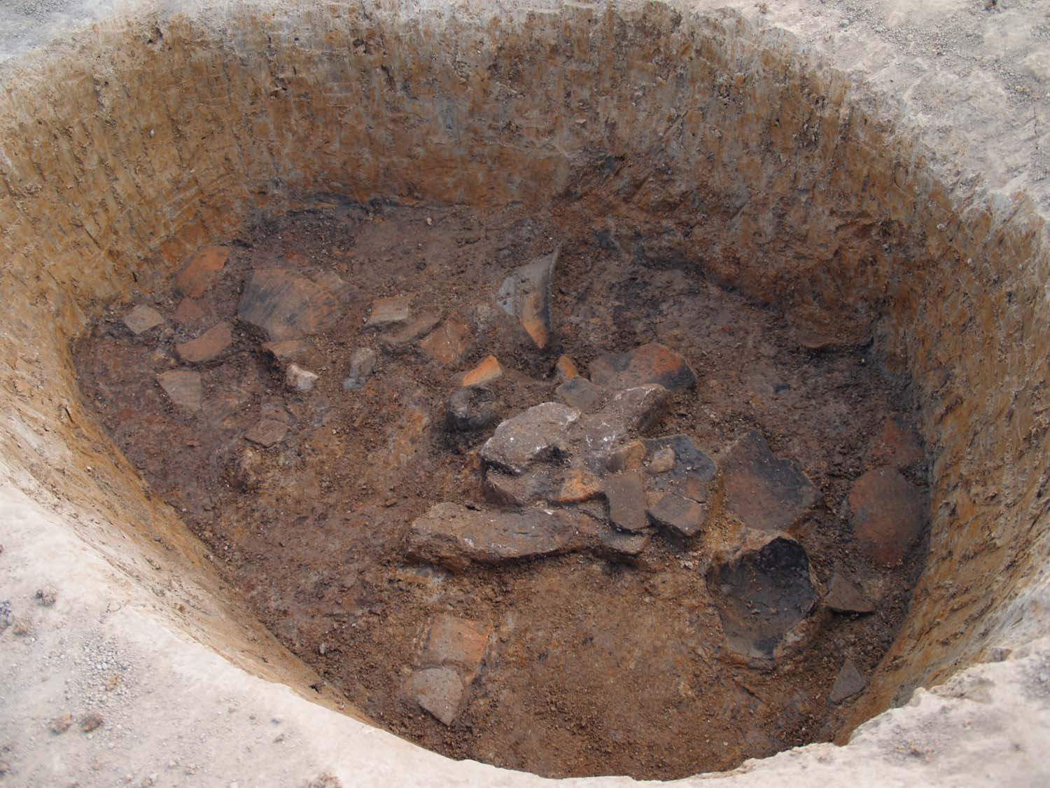 Keramický materiál po odkrytí při archeologickém výzkumu
