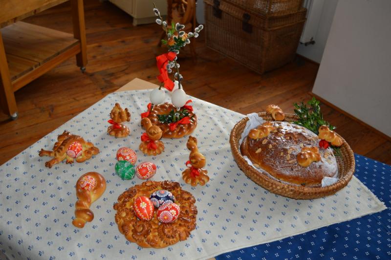 V jejím repertoáru lze najít tradiční zvykoslovné předměty, kouzelné figurky ze šustí, dekorace z dřevěných hoblinek i slámy, nádherné - pro jihočeskou oblast typické – precizně provedené batikované kraslice, tzv. straky, i vizovické a obřadní pečivo. A tradiční zvykoslovné kynuté, takzvané z volné ruky či jen krátce „kynuťáky“, pochopitelně nechybí.