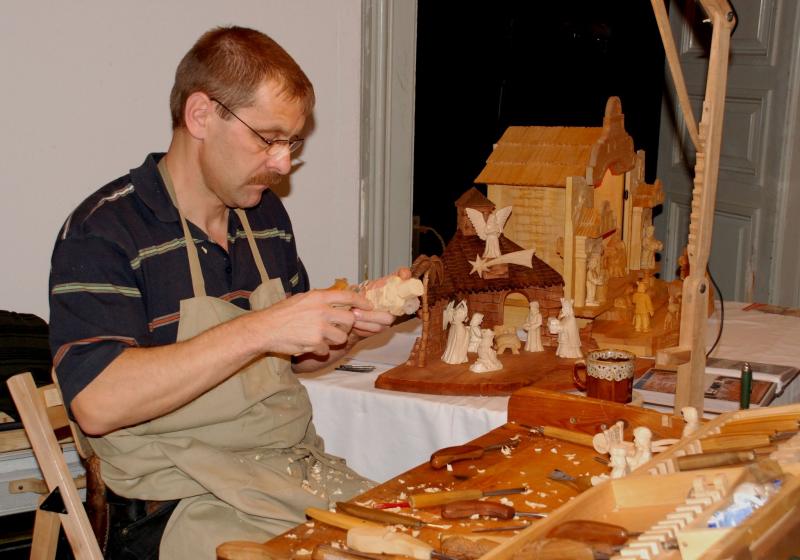 V dílně a dokumentaci volyňského řezbáře Jaroslava Frencla a můžeme najít nejen plastiky, kříže či obrazové rámy, ale zejména – pokud máte štěstí a zakázka ještě není odevzdána - velkou škálu betlémů.