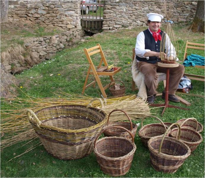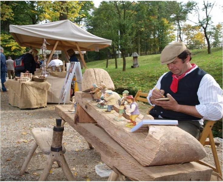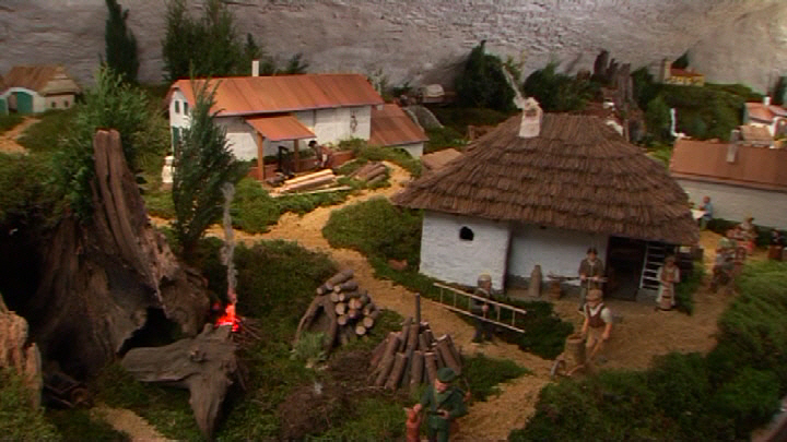 a s přadlenou při práci i repliku papírny z druhé poloviny 18. století, proslulou lenorskou pec, trať legendární koněspřežky či místní kostel, neúnavně bušící hamr, buditele Kamarýta, vášnivého místního nimroda Karla Papíra, tesaře při práci ( že by firma Šnajdr z Komařic ? ), žně i s bachlicí, havíře dobývající uhlí, na kruhu točícího hrnčíře, kováře a koláře nad ráfkem kola, šumavské skláře s dobovými píšťalami, vinaře i hasiče právě zápasících s ohněm. Nechybí ani regenschori Marie Pešková, nestor prácheňských dudáků Josef Režný a dokonce ani sám autor, jak jej známe věčně usměvavého třeba z hoslovického mlýna při akcích strakonického Muzea středního Pootaví dokonce i při jeho „vedlejšáku“ - pletení košíků.