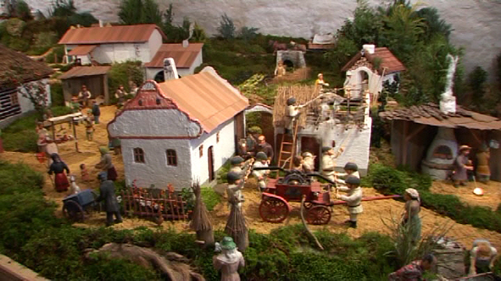 A inspiroval se nejen klasickou podobou jesliček, ale i ve svém okolí. Mezi 17cm vysokými postavičkami z lipového dřeva, se tak dají rozpoznat slavní rodáci i celá řada současných obyvatel; a nejen odtud, zkrátka ti, kteří zásadním zasáhli do života autora. Jejich prostřednictvím jsou zde zobrazena různá řemesla, tradiční momenty ze života a charakteristické doklady jihočeské architektury zasazené do jihočeské krajiny.