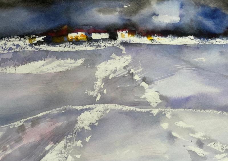 Během kurzu, který se koná v neděli 11. ledna 2026 od 14:00 do 17:00 hod. v edukačním sále Jihočeského muzea (Dukelská 1), si vytvoříte dva vlastní obrazy. Techniku akvarelu využijete při tvorbě díla „Mrazivá noc“, pro obraz „Za mlhou“ pak sáhnete po suchém pastelu.
