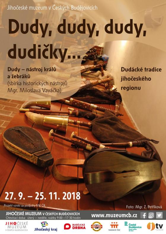Výstava "DUDY, DUDY, DUDY, DUDIČKY - Dudácké tradice jihočeského regionu; Historické dudy - nástroj králů a žebráků (sbírka historických nástrojů Mgr. Miloslava Vaváčka)" představuje návštěvníkům specifický lidový nástroj v souvislosti s péčí Jihočeského kraje o tento cenný odkaz tradic našeho regionu.