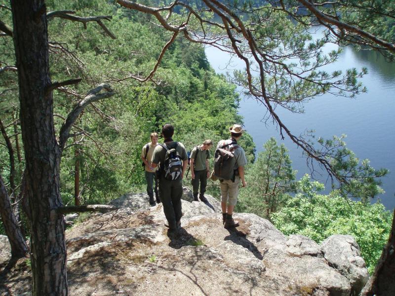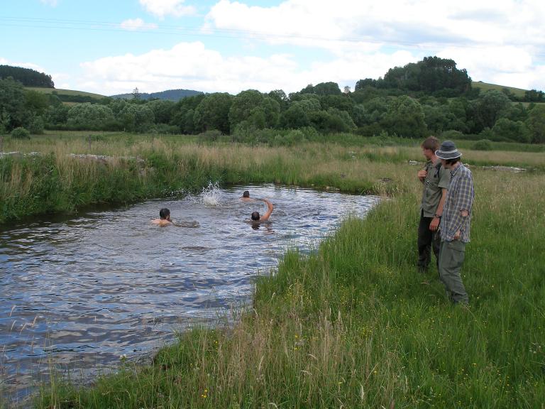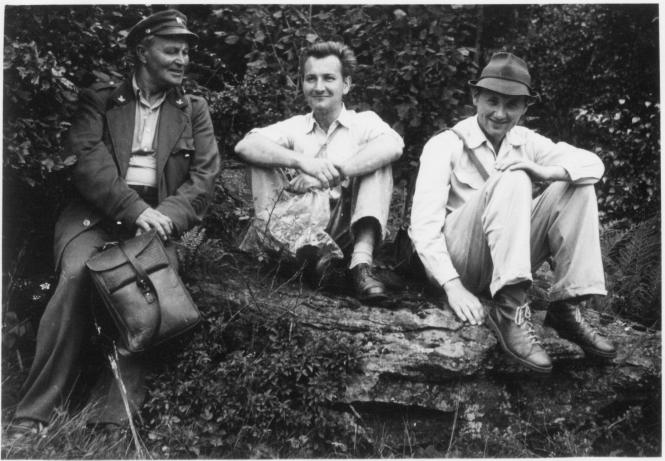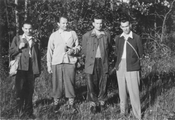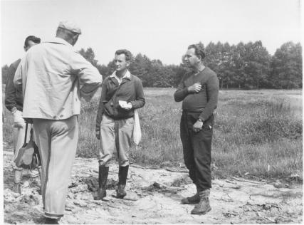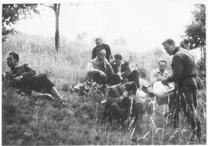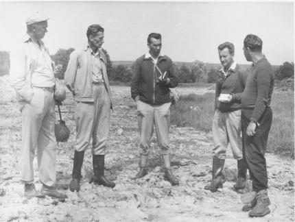 Letněné rybníky u Čejetic 29. 7. 1962 (zleva: J. Hartl, J. Vaněček, V. Skalický, S. Hejný) (foto: V. Chán).