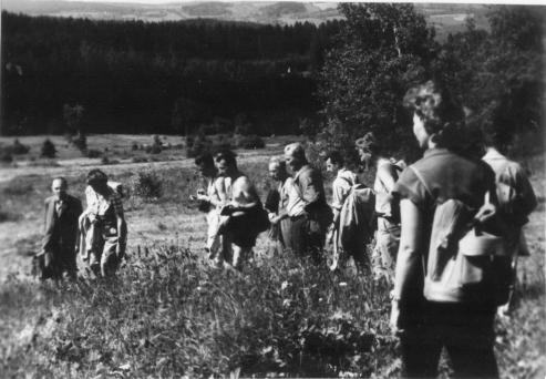 Kurs na určování rodů u čeledi Poaceae v Českých Budějovicích 14. - 16. 7. 1961 (zleva: S. Kučera, A. Rak, A. Čábera, J. Kaisler, F. Mladý, F. Doležel, V. Žíla, J. Gazda, S. Karlík, F. Pišta, J. Blažek, J. Moravec, J. Stuchlý, R. Kurka, D. Blažková, J. Štěpán, J. Vaněček, V. Růžičková, A. Češka, L. Štěpánová, J. Kučerová, V. Chán, O. Kovandová, Z. Pouzar, V. Jechová) (foto: V. Chán).