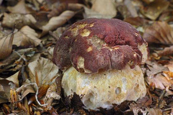 Druh příbuzný hřibu smrkovému, od kterého se liší červenými až fialovými tóny na klobouku a žlutými odstíny na třeni. Roste pod borovicemi, ale i pod smrky a buky. Podle pamětníků býval v některých částech jižních Čech před druhou světovou válkou běžnější než hřib smrkový. Ve druhé polovině dvacátého století téměř vymizel a až v posledních letech se začal pozvolna vracet. Návštěvnice výstavy v roce 2018 nám sdělila, že hřib borový nachází pravidelně v bukovém porostu u Hluboké nad Vltavou a následně své tvrzení doložila kolekcí plodnic.