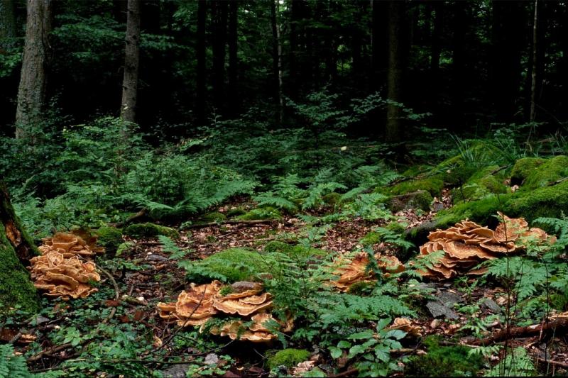 To už jsme se ocitli v těsné blízkosti PR Fabián. Vzhledem k neutěšenému stavu fruktifikace hub v lese (kromě nivy potůčků) a při vědomí toho, že na Fabiánu nejsou žádné vodoteče, jsme byli ve svých očekáváních spíše střízliví, třebaže jsme doufali, že by situaci mohly zachránit mohutné padlé tlející kmeny, které dokážou „podržet“ vodu… PR Fabián jsme atakovali od severozápadu a obcházeli jsme ji proti směru hodinových ručiček. Nakonec to nedopadlo úplně špatně: zaznamenali jsme kolem čtyřiceti druhů hub, v naprosté většině houby dřevožijné, mj. jsme našli pět druhů štítovek, všechny na dřevě buku.
